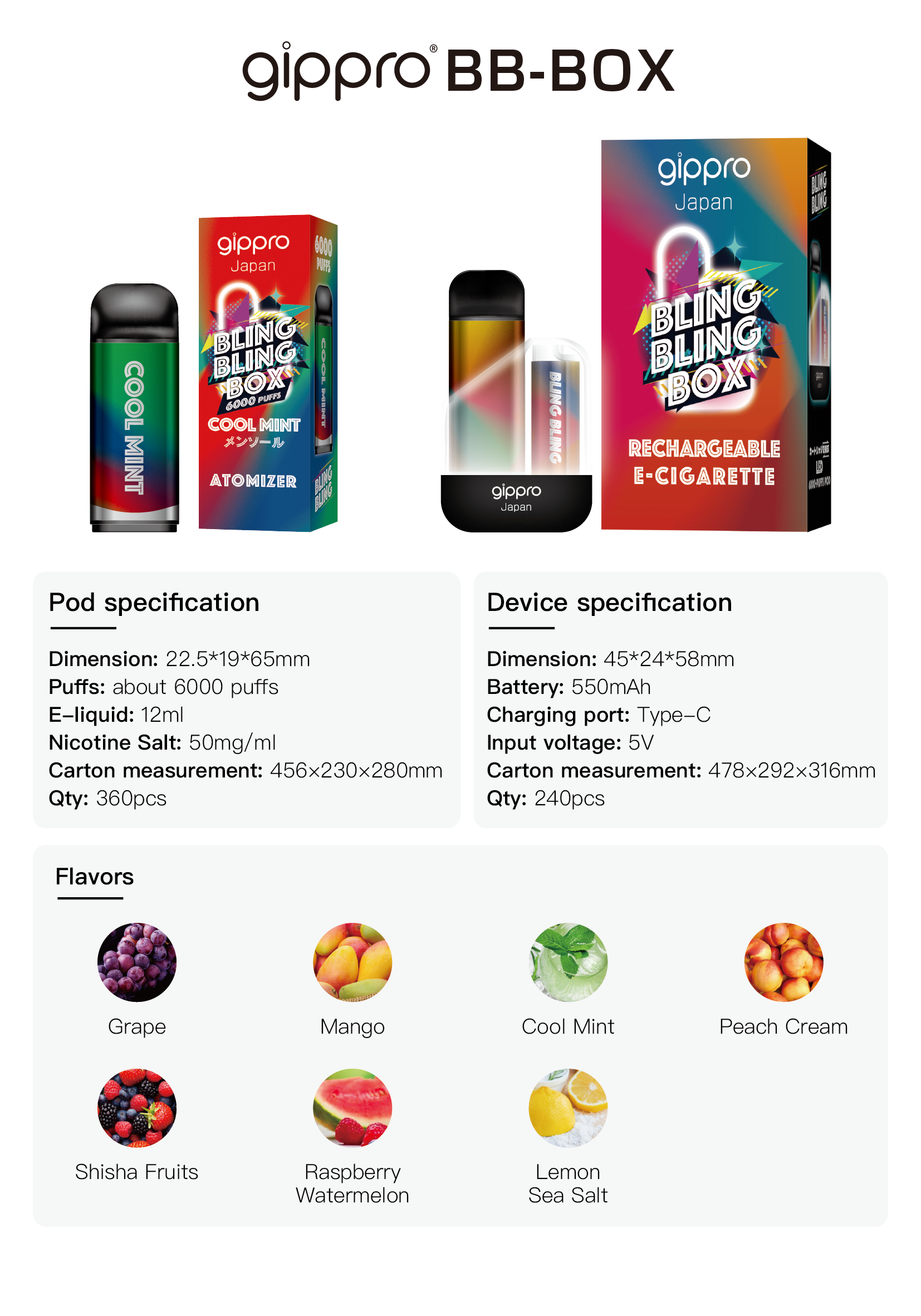 Gippro Bling Bling Box Device Luminous Rechargeable E-cigarette Pods Wholesale
